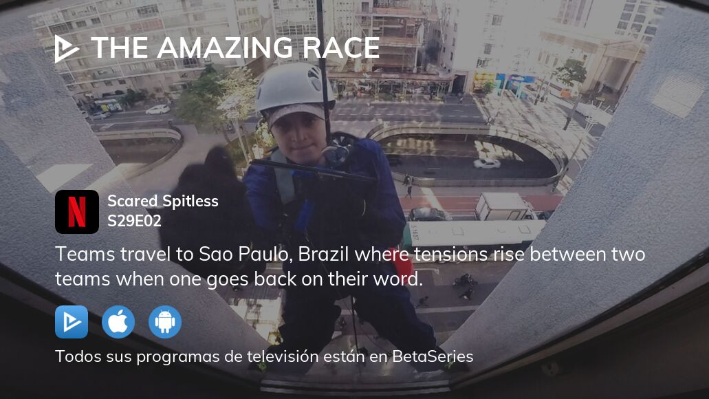 TheAmazingRaceS29E02HDTVx264-LOLettv Uploaded 04-07 2017 Size 40615 MiB ULed by ettv. The Amazing Race S29E02 OAD - 462017 - Scared Spitless. The Amazing Race is an adventure reality show hosted by Phil Keoghan that pits 10 11 or 12 teams of 2 or 4 people against each other in a race around the world for approximately 40 days.